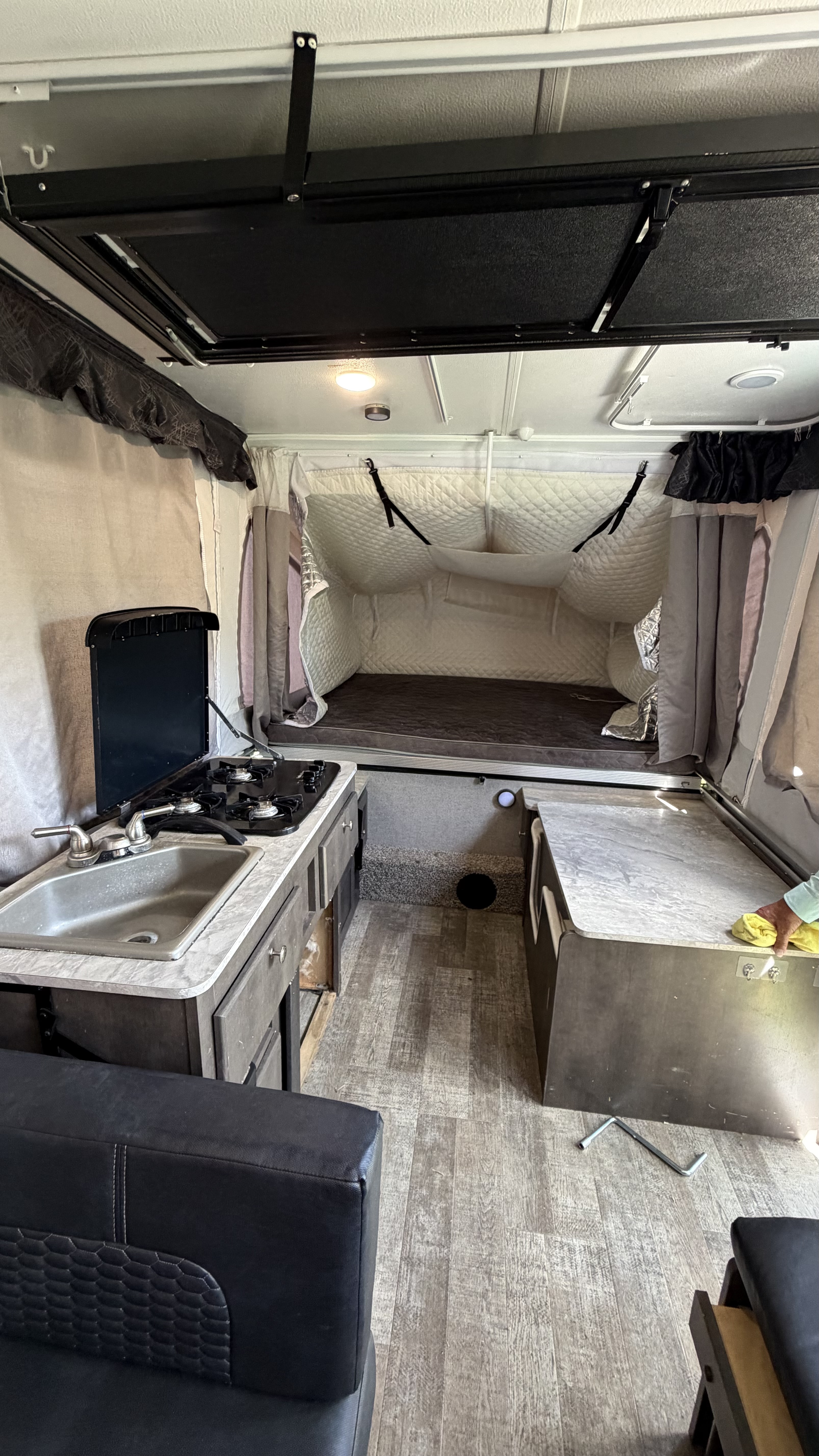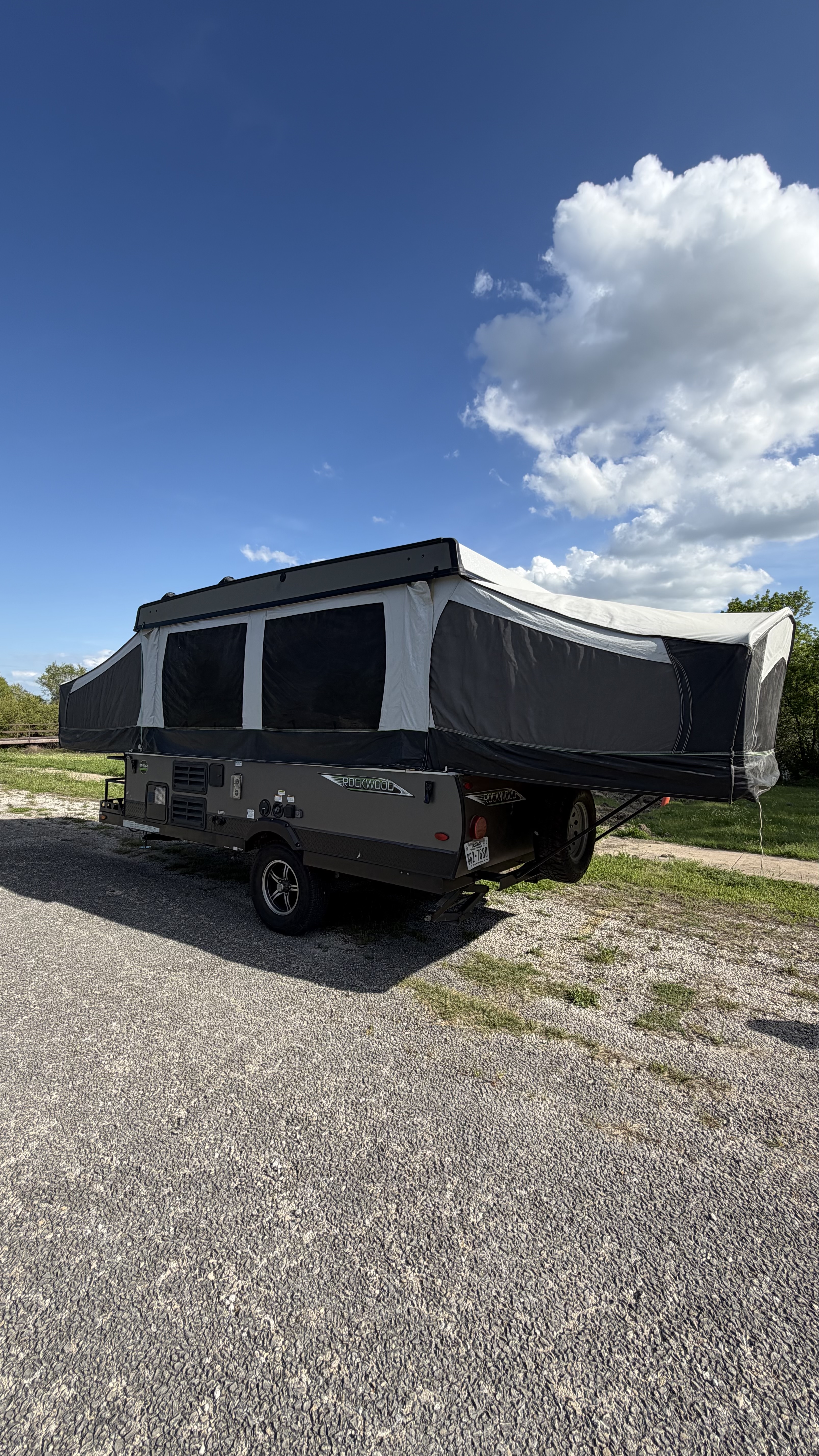 Rockwood 2280BHESP Sports Package Pop-Up Camper – Ready for Family Adventures! This consignment Rockwood 2280BHESP is the ultimate lightweight sports package built for active families and weekend warriors. Designed with adventure in mind, it features a massive 28" x 84" front metal deck with expanded storage – perfect for hauling any gear you need for a full week at the campground. Inside, the spacious floorplan comfortably seats and sleeps the whole family. It includes: Two large beds (60" × 80" and 70" × 80") with mattresses and thermal insulation on the king side for those chilly nights. A convertible gaucho bed A dinette (36" × 69") with table extension The swing galley is fully equipped with a sink, refrigerator, and 3-burner stove. FULL SHOWER / TOILET FACTORY INSTALLED!! Additional off grid style modifications made include, high end air mattress on queen side. 12V A/C w/heat pump, electric tongue jack, underbelly lighting, 200mah battery and so much more. Light, easy-to-tow, and packed with thoughtful features, this Rockwood 2280BHESP delivers comfort, storage, and versatility without the hassle of a full-size travel trailer. Whether you’re heading to the lake, mountains, or your favorite campground, this consignment unit is turn-key and ready for your next family memory. Serious inquiries only, motivated seller, schedule a showing today!